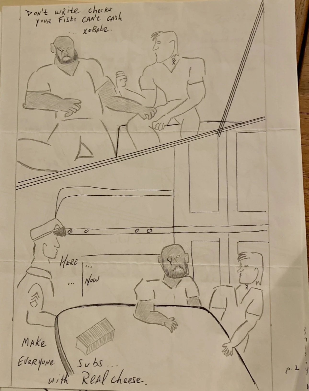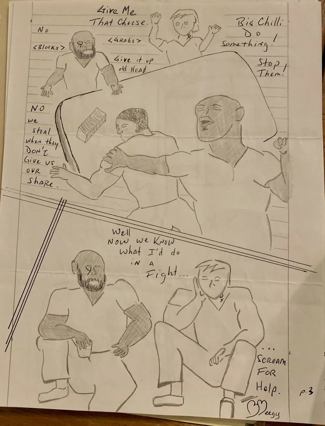I was housed in minimum building when I drew this. It was wonderful to feel a purpose in creating art again. To draw for the potential of being published, and sharing part of my world. It felt great, Thank you ABO.